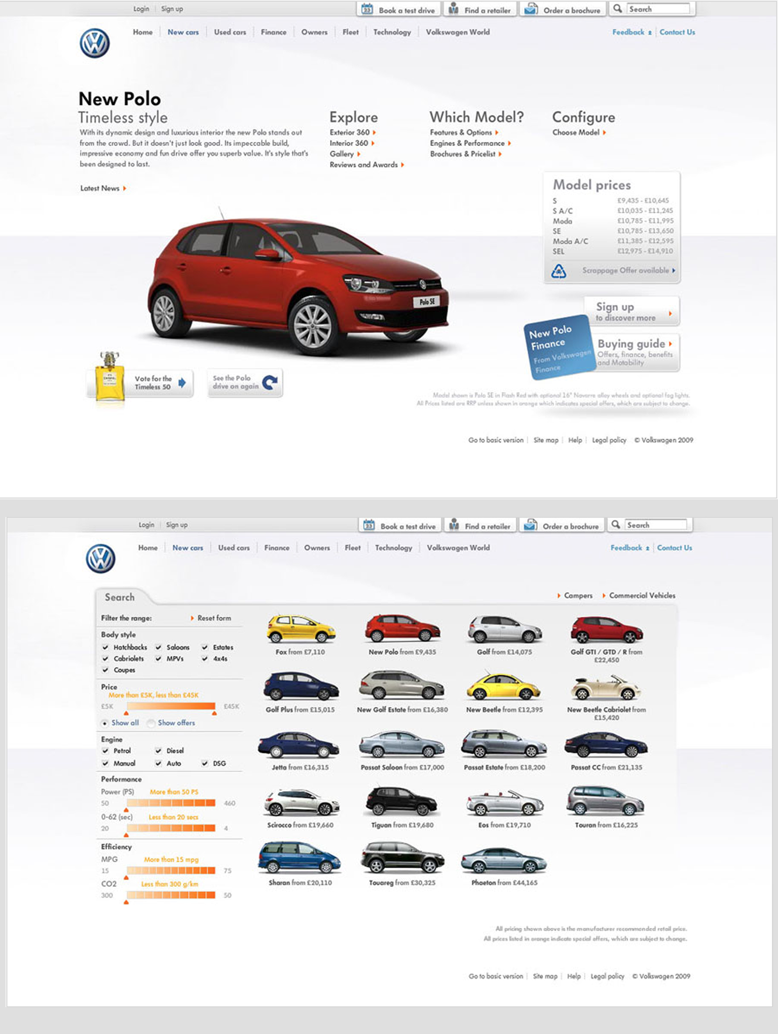 Back then, when Flash was the bee's knees, UX was still IA. The Volkswagen UK relaunch set a new standard for automotive websites and was used as an example for new UI and UX patterns in general. You can still find examples of the site in industry books today. The site's design and UX stood up to the test of time. Flash, however, didn't. -
