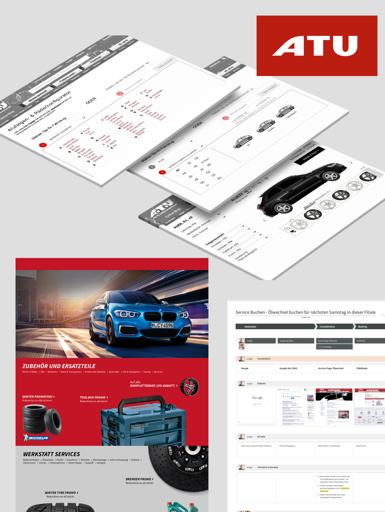 A.T.U. has over 530 garages in Germany alone. I was the lead UX for omnichannel digital transformation projects, including a site relaunch with all processes, such as user account management, service booking, and purchases. Always in close dialogue with the workers in the garage and their customers. -